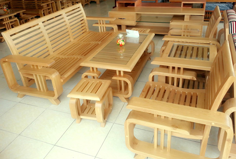 Sofa @ gỗ tần bì (Sồi Nga) tự nhiên 100% cỡ lớn - 7 món: