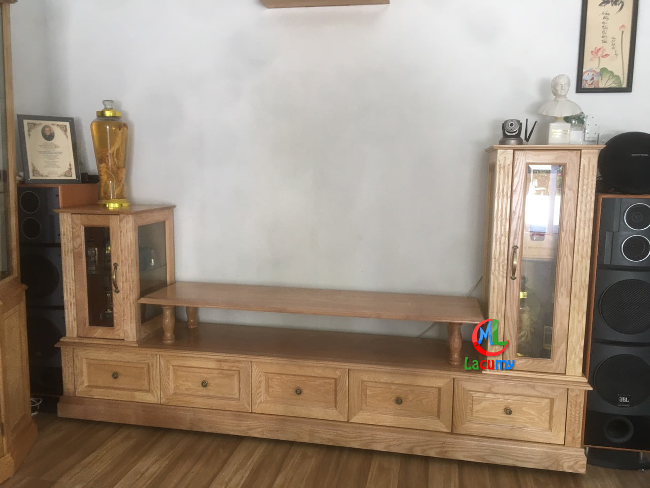 TỦ TRƯNG BÀY 4 CÁNH + TỦ 6 HỘC KÉO GỖ SỒI NGA (TẦN BÌ)