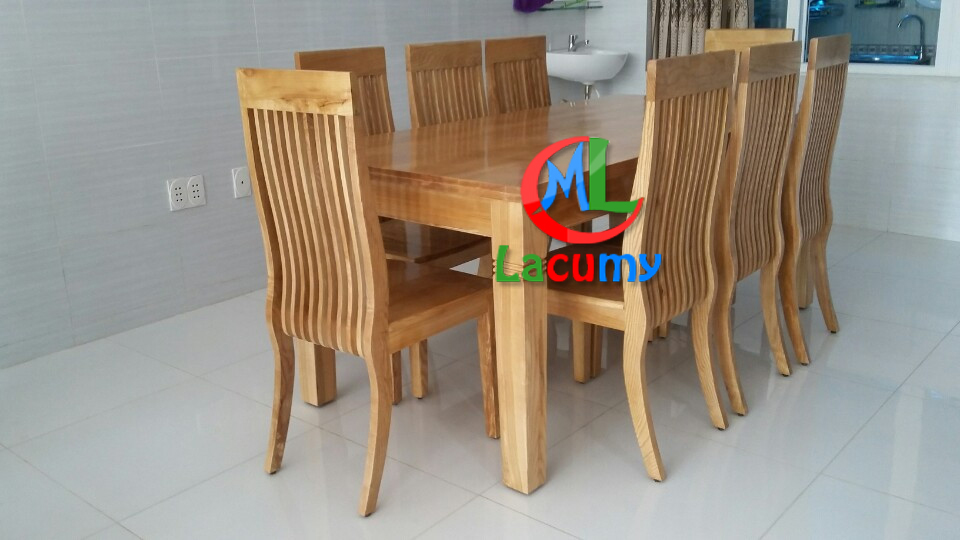 Bộ bàn ăn chữ nhật gỗ tần bì tự nhiên - Bao gồm: