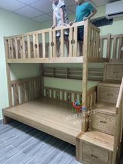 Giường 2 tầng cầu thang hộc kéo bên trái/phải gỗ tần bì(sồi Nga) - GN30