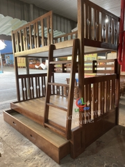 Giường 3 tầng cầu thang LEO phải/trái gỗ tần bì(ash) Màu WALNUT - GN29