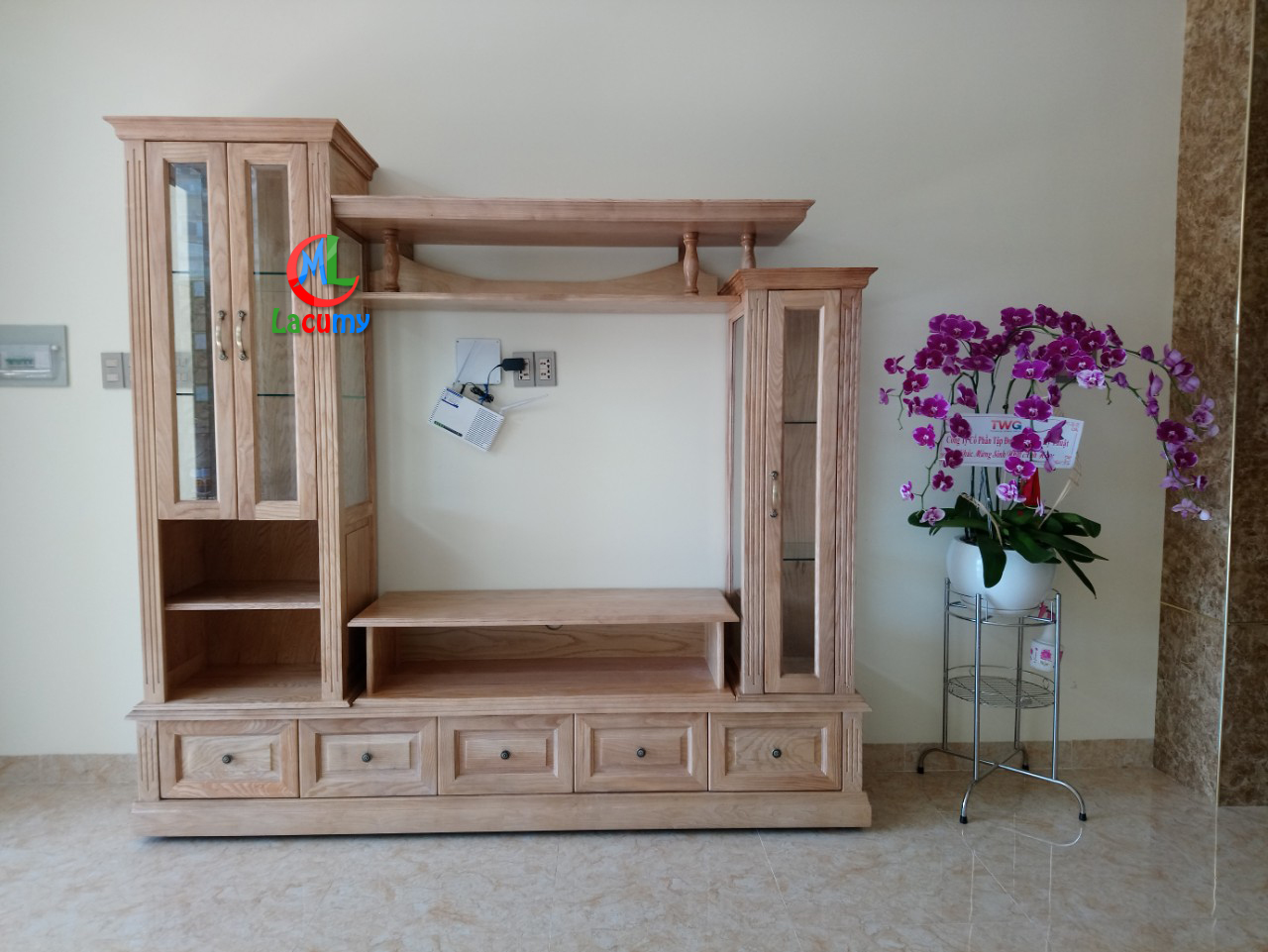 Kệ TIVI lệch cao KE14B 2m4 gỗ tần bì (sồi Nga)