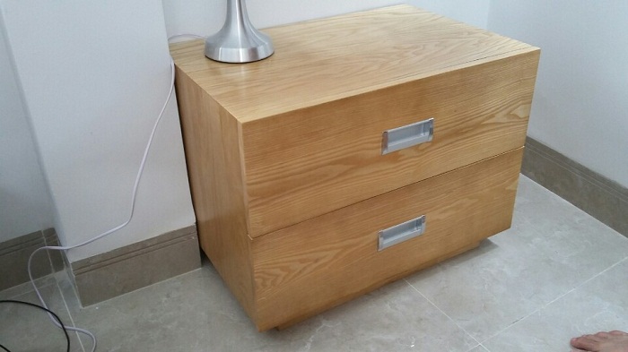 Tủ đầu giường 2 ngăn kéo gỗ Tần bì (sồi Nga) tự nhiên